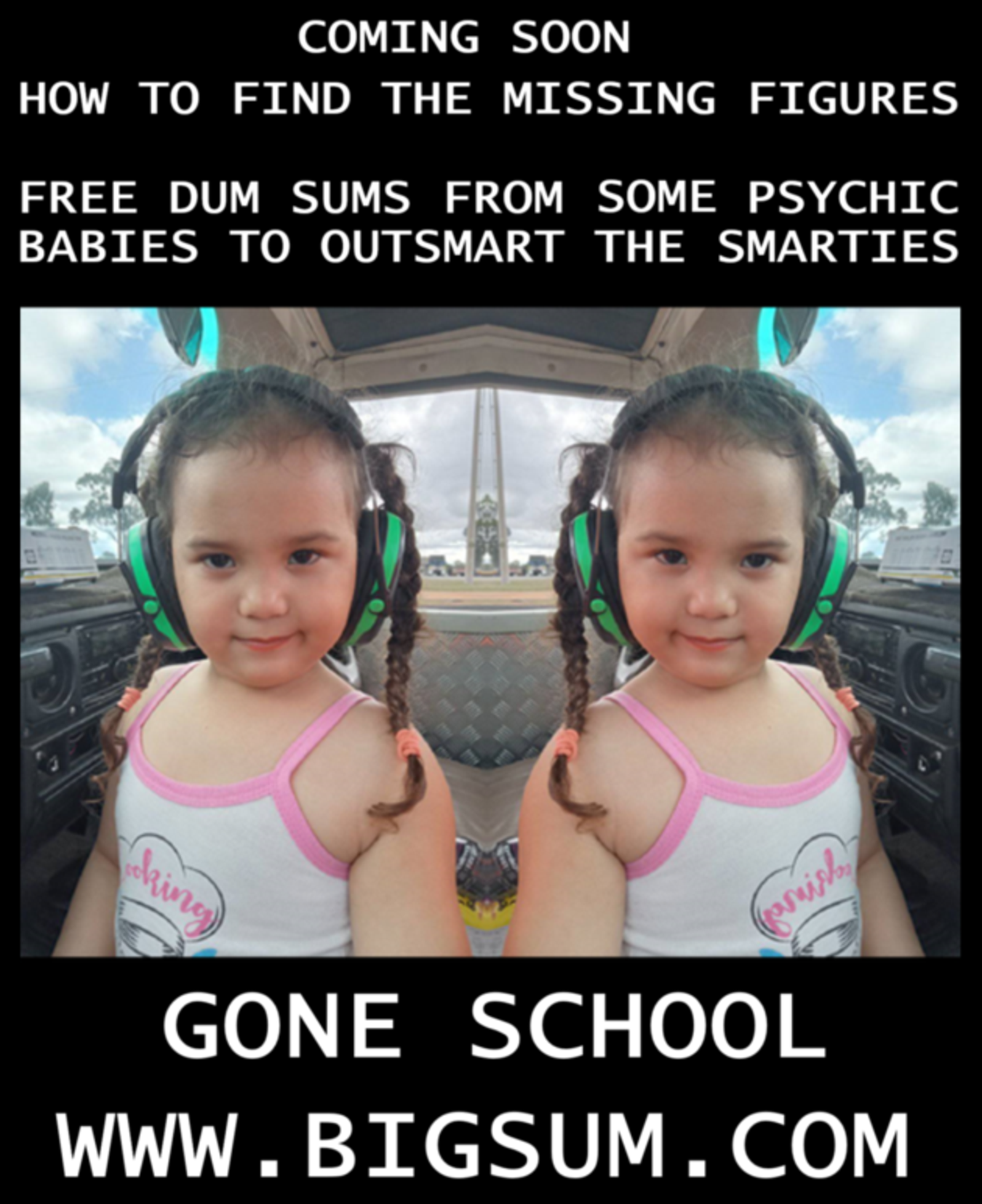 Impossible but true! Nought year old babies from Nought School to demonstrate creating the 21 digit Dum Dum for the 30 digit Dum Sums in the infinite digit Big Sums that teachers cannot explain ............................coming soon